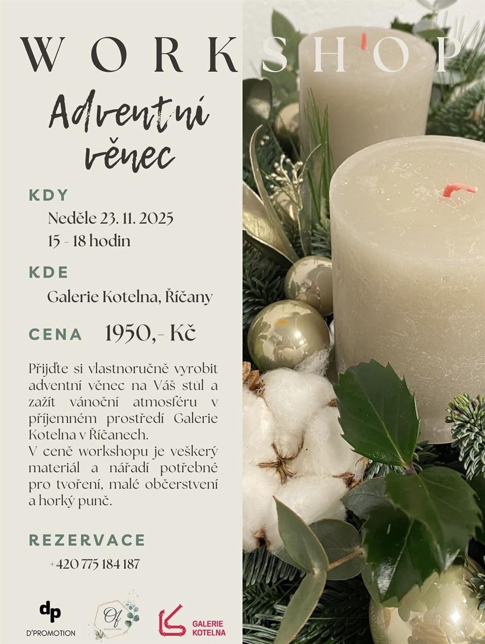 Přijďte si vlastnoručně vyrobit adventní věnec na Váš stůl a zažít vánoční atmosféru v příjemném prostředí Galerie Kotelna v Říčanech.