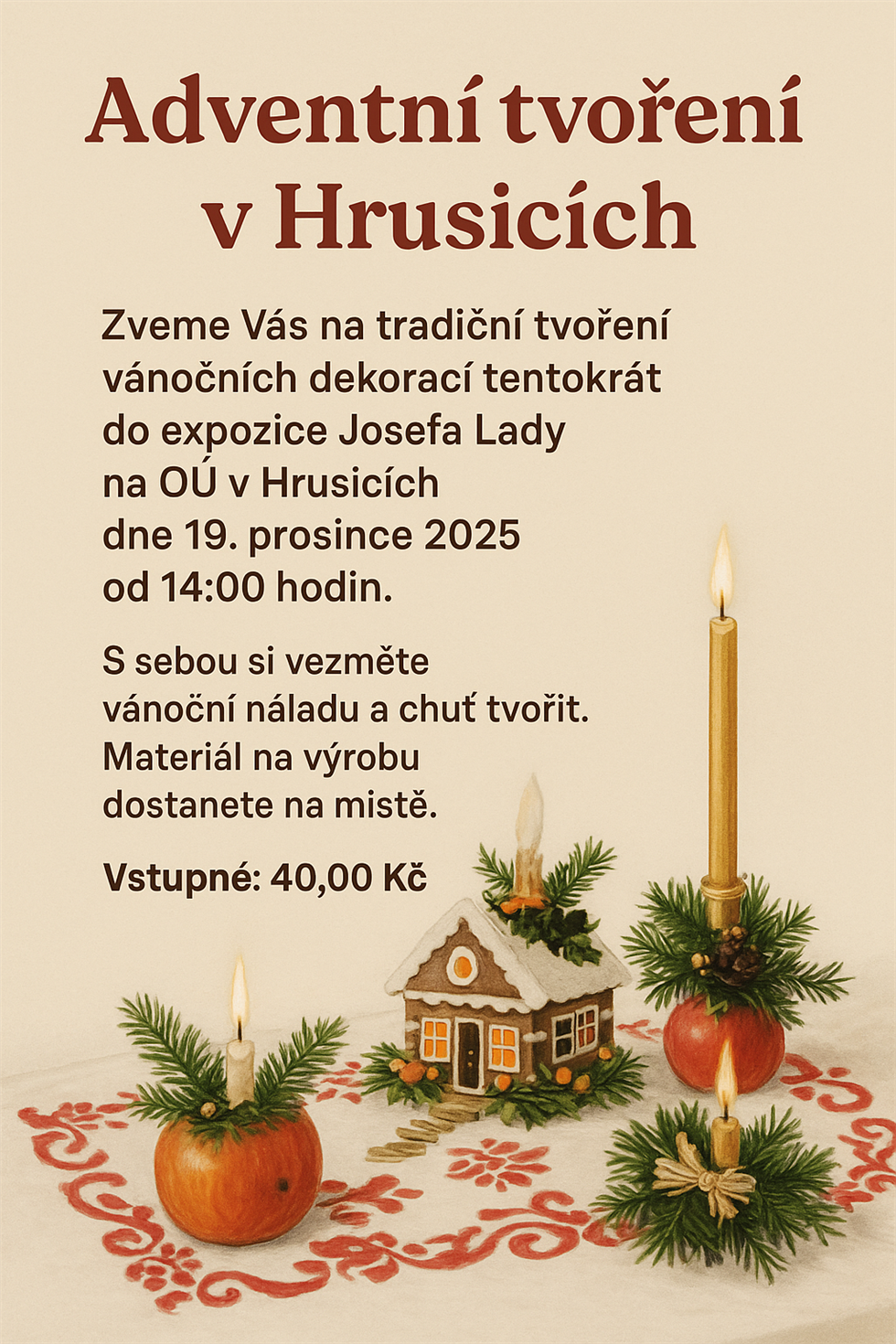 S sebou si vezměte vánoční náladu a chuť tvořit. Materiál na výrobu dostanete na místě.