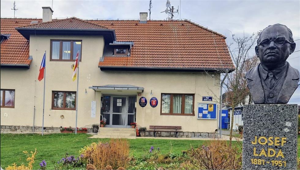 Het gedenkteken voor Josef Lada en zijn dochter Alena bevindt zich in het huis nr. 115, dat door de familie Lada werd gebruikt voor zomerverblijven. Dit huis werd in 1933 ontworpen door architect Čeněk Vořech (1887-1976), een leerling van architect Jan Kotěra.