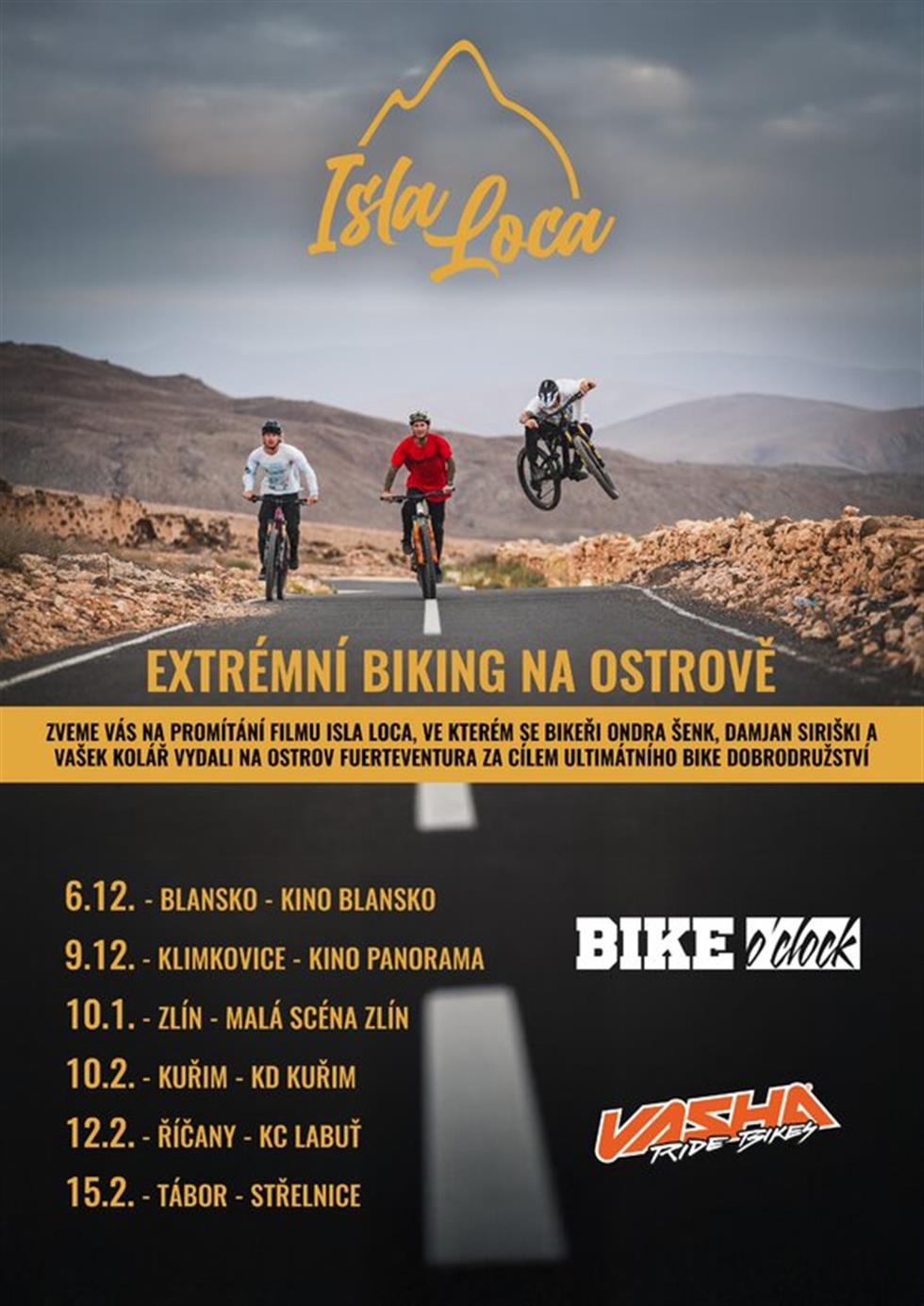 Zveme vás na promítání filmu Isla Loca, ve kterém se bikeři Ondra Šenk, Damjan Siriški a Vašek Kolář vydali na ostrov Fuerteventura za cílem ultimátního bike dobrodružství.