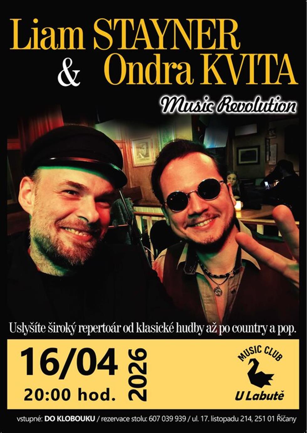 Přijďte zažít hudební revoluci - uslyšíte široký repertoár od klasické hudby až po country a pop v aranžích dvou profesionálních muzikantů!